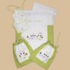 – 1 sacca primo cambio (opzione maschietto o femminuccia) 38×42 cm in piquet di cotone 100% con una pratica chiusura con coulisse;
