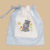 – sacca primo cambio 38×42 cm in millerighe di cotone 100% con una pratica chiusura con coulisse;