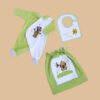 Mini set linea Orso Patch, realizzato interamente a mano, che abbina il bianco al verde mela.