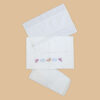 Set lenzuolino ricamato, realizzato a mano, in batista di cotone avorio.