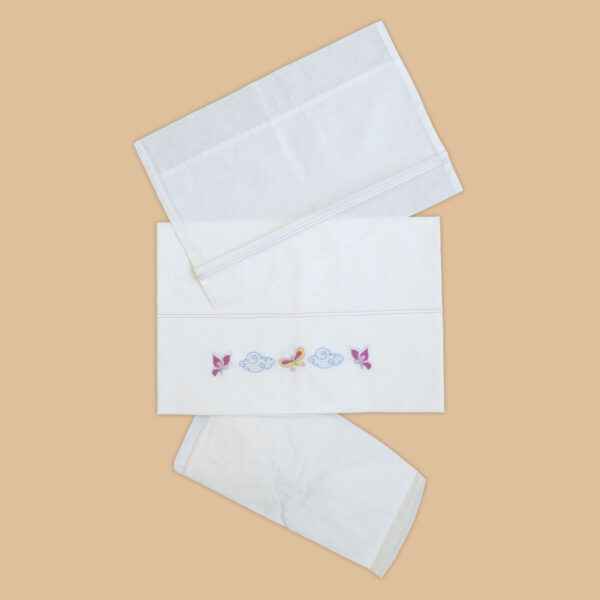 – per carrozzino (federa 25×35 cm, lenzuolino 80×100 cm, lenzuolino coprimaterasso 40×75 cm)