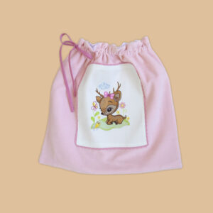 Sacca per il primo cambio in millerighe di cotone ricamata, personalizzabile con il nome del tuo bambino.