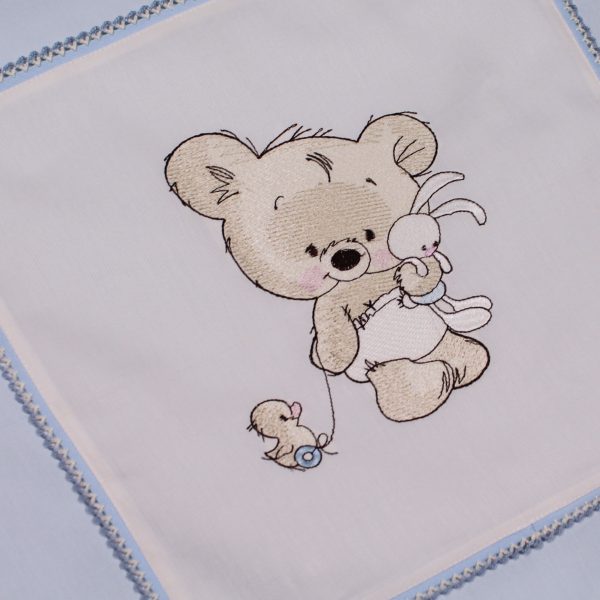 Copertina in millerighe di cotone, fresca per l’estate, può essere realizzata con apertura a bottoni sul retro e dotata di imbottitura estraibile che la rende calda e confortevole anche per l’inverno.