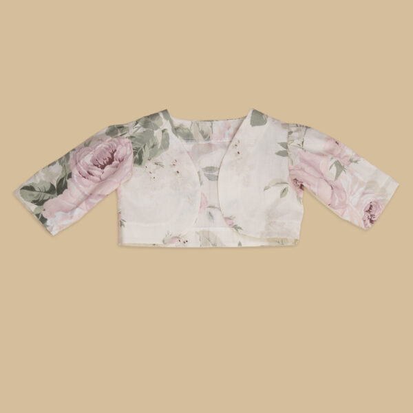 Giacchino bimba realizzato interamente a mano in cotone in una romantica fantasia a rose.